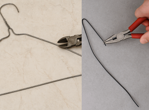 - Coupez l’une des extrémités à l’aide d’une pince coupante pour ouvrir le cintre.